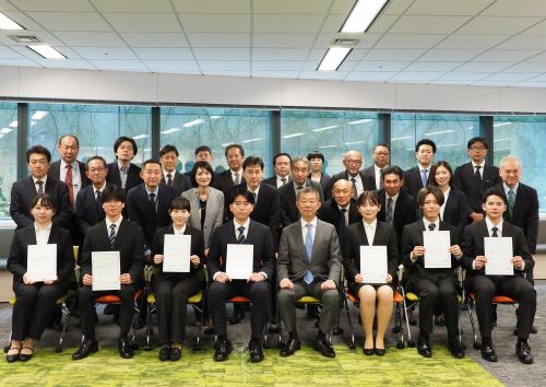 入社式は、辞令交付の後、代表取締役社長の松村 力より新入社員へ向けたあいさつがありました。